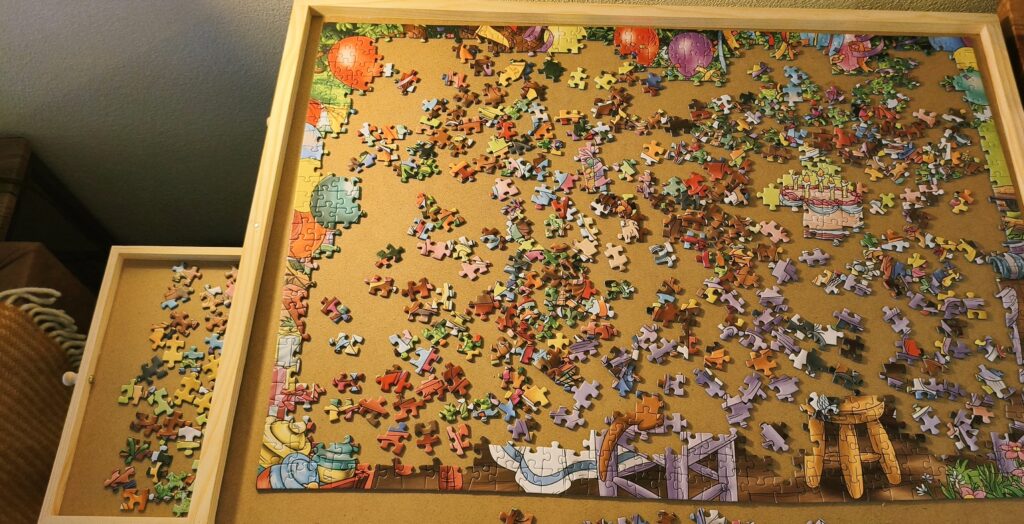 Als het druk is in mijn hoofd probeer ik iets te vinden om mezelf af te leiden. Deze week was het bijzonder druk in mijn hoofd dus ik besloot de puzzel die ik voor mijn verjaardag kreeg te gaan maken. Veel mensen hebben hobbies waar ze goed in zijn, ik ben niet goed in puzzelen maar dat vind ik niet erg want nu kan ik weken doen over één puzzel. Ik was twee dagen bezig om simpelweg de rand te leggen, en ik had zelfs hulp nodig voor de laatste twee stukjes. Maar als ik aan het puzzelen ben wordt het een stuk stiller in mijn hoofd. Ik kreeg voor kerst een puzzelbord en dit maakt het puzzelen een stuk makkelijker, je hebt niet alleen een bord voor je puzzel maar ook 4 lades om je puzzelstukjes in te organiseren. En ik hou van Winnie the Pooh dus deze puzzel is perfect voor mij.