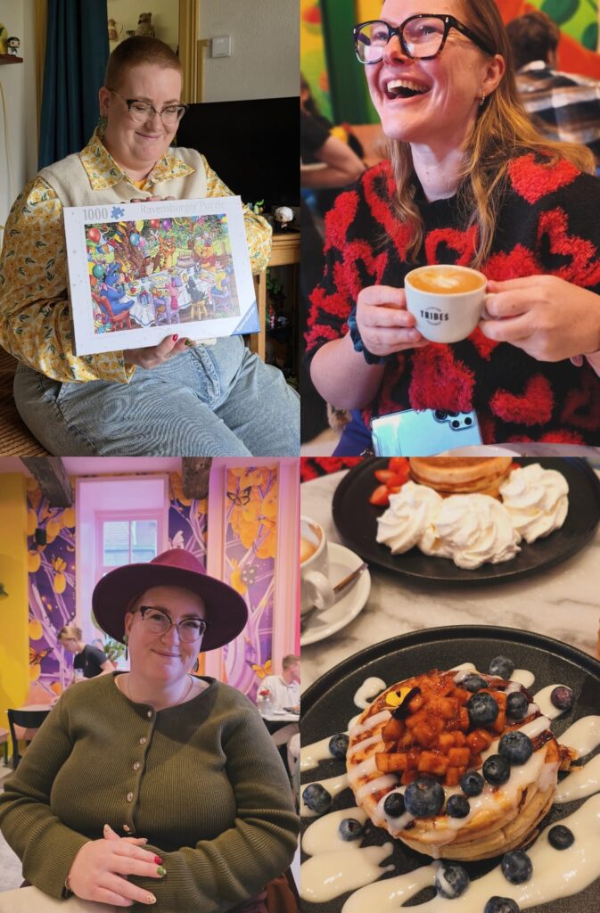 Vorige week zondag ging ik naar Groningen met mijn beste vriendin Marieke (maar ik noem haar al meer dan 20 jaar Miep) , voor mijn verjaardag mocht ik kiezen tussen een cadeau of een ervaring, en ik ging voor de ervaring. Dus we gingen samen lunchen, winkelen en naar de bioscoop. Ik mocht een lunchplek kiezen en na even googlen naar leuke lunchplekjes in Groningen koos ik voor Blue Bananas Pancakes. Ik ben dol op fluffy Amerikaanse pannenkoeken dus dit restaurant was perfect. Na lang twijfelen ging ik voor de Cinnamon Bun pannenkoeken, ze werden geserveerd met warme stukjes appel en bosbessen en waren heerlijk. Het is een erg populaire zaak dus we moesten in de rij wachten om binnen te gaan, dus hou hier rekening mee als je ook eens wil genieten van deze pannenkoeken maar het was het echt waard! Het restaurant is onwijs leuk ingericht, met mooie wandschilderingen en het personeel is erg vriendelijk. Het eten wordt snel geserveerd en de prijzen zijn prima. Echt een aanrader!